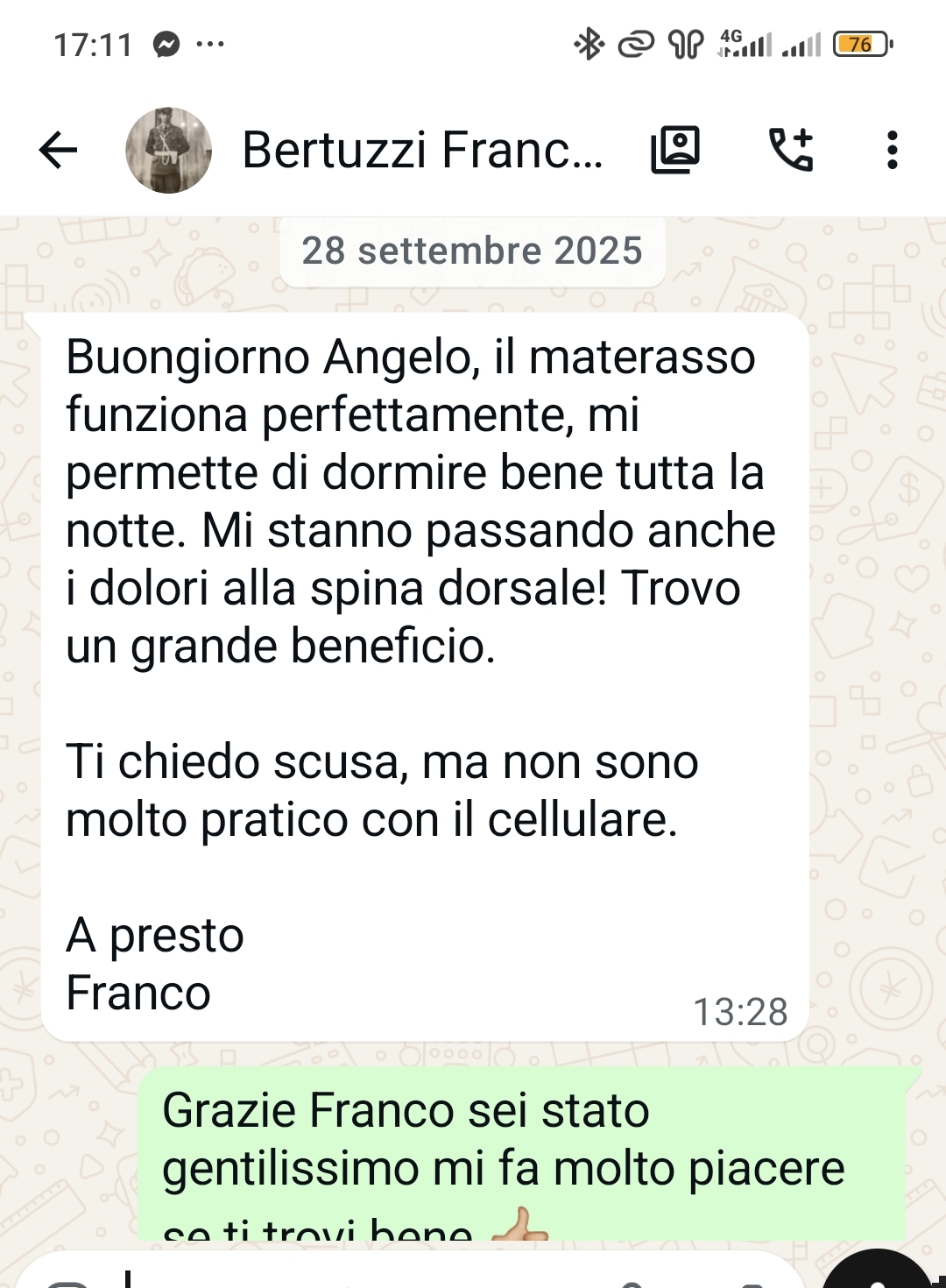 Perché non è solo un materasso — è un sistema completo per il benessere della tua schiena. Acquisti un prodotto certificato dispositivo medico e detraibile, e in più ti regaliamo una visita posturale con un professionista, esercizi personalizzati e tutto quello che serve per prenderti cura della tua schiena anche fuori dal letto. Nessun altro materasso ti offre un percorso così.